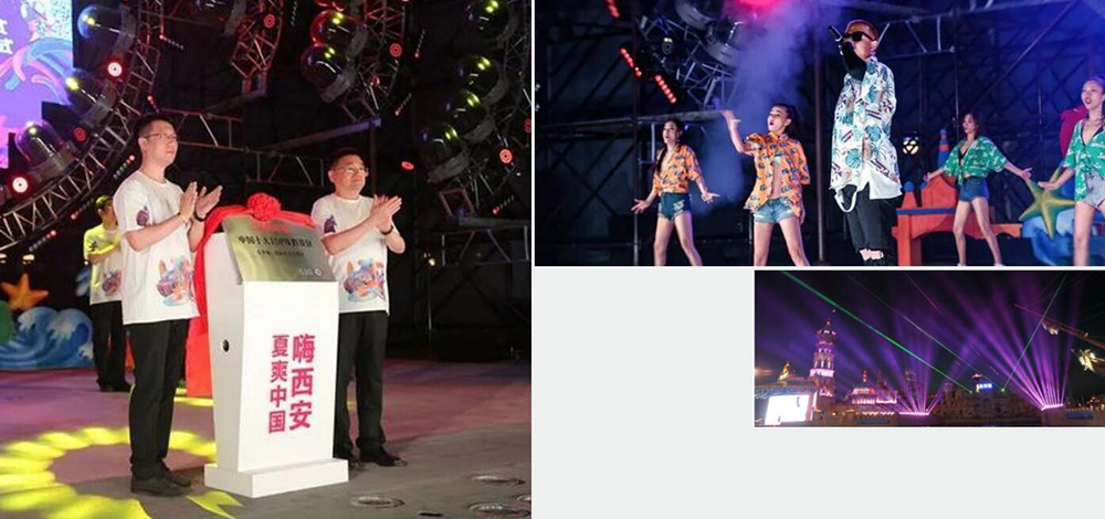 2019年6⽉6⽇,乐在西咸·悦动中国——“夏 爽中国·嗨西安”夏季⽂化旅游活动启动式暨乐华城 88°C温泉乐园开园仪式,在乐华城88°C温泉乐园隆重 举⾏,活动现场规划4⼤特⾊街区。 (⼀)游泾河·⽂旅推⼴街区; (⼆)品泾河·茯茶体验街区; (三)采泾河·特⾊⽂创街区; (四)观泾河·⾮遗展演街区; ⼿印启动台、激光灯投射/⻜花/焰⽕等极具视听 冲击⼒的节奏成为活动⼀⼤亮点,获得了⼀致好评。
